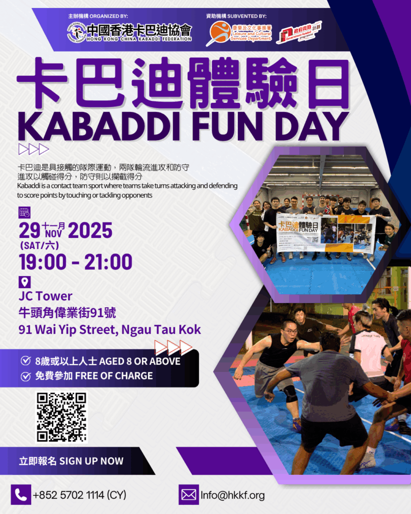 原來「麻鷹捉雞仔」都可以係一個運動項目?仲要喺1990年已經成為亞洲運動會(亞運)嘅正式比賽項目?如果你想重拾童年回憶,一大班人一齊玩遊戲,又想試吓新興運動,體驗卡巴迪嘅樂趣,歡迎大家一齊叫埋朋友仔嚟參加我哋嘅卡巴迪體驗日。